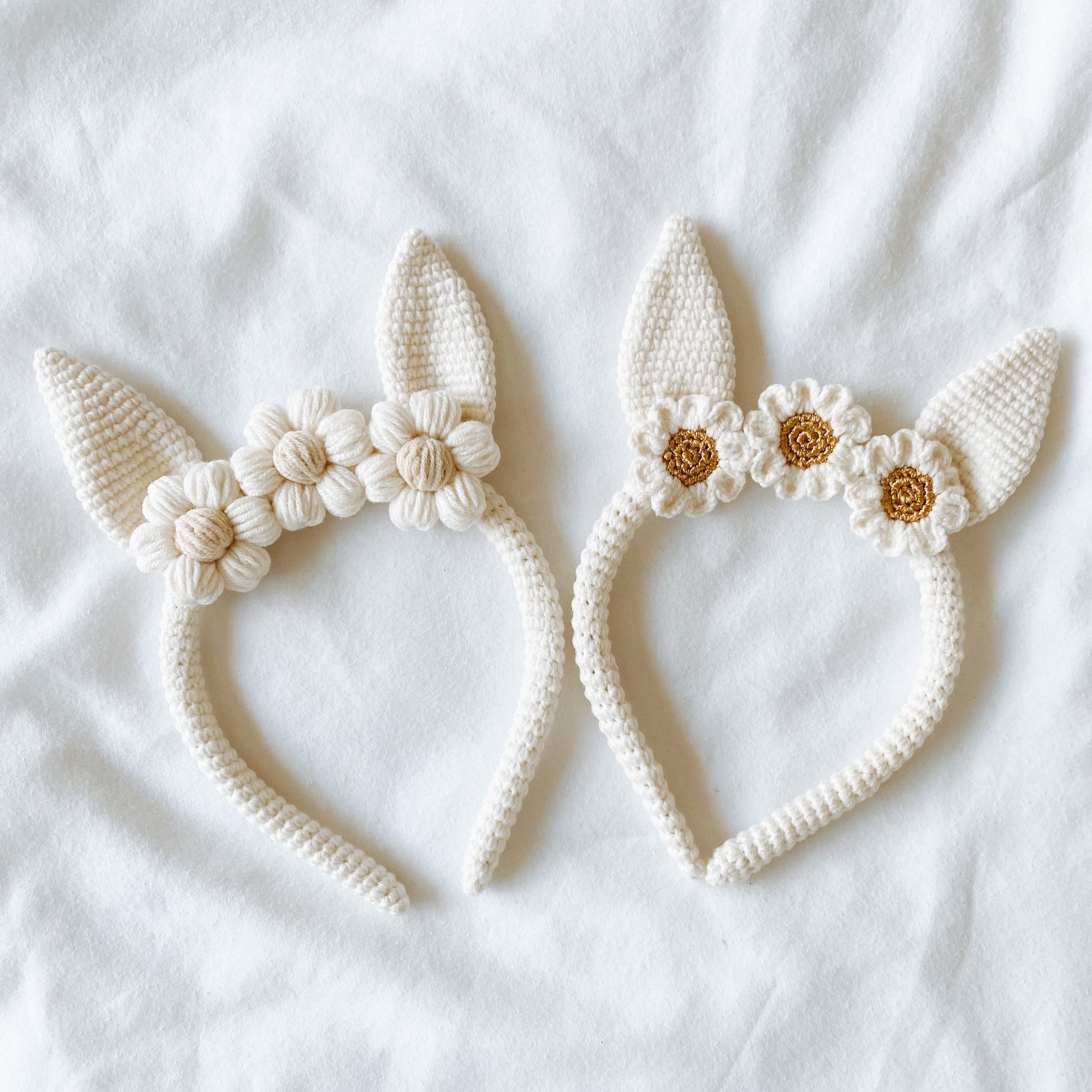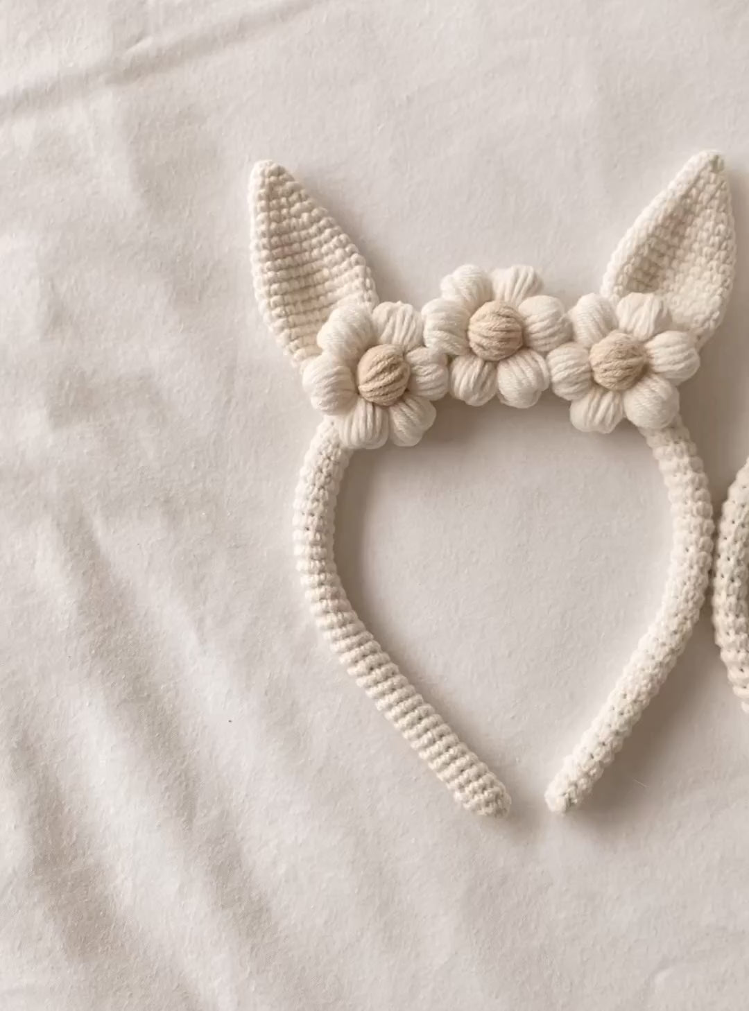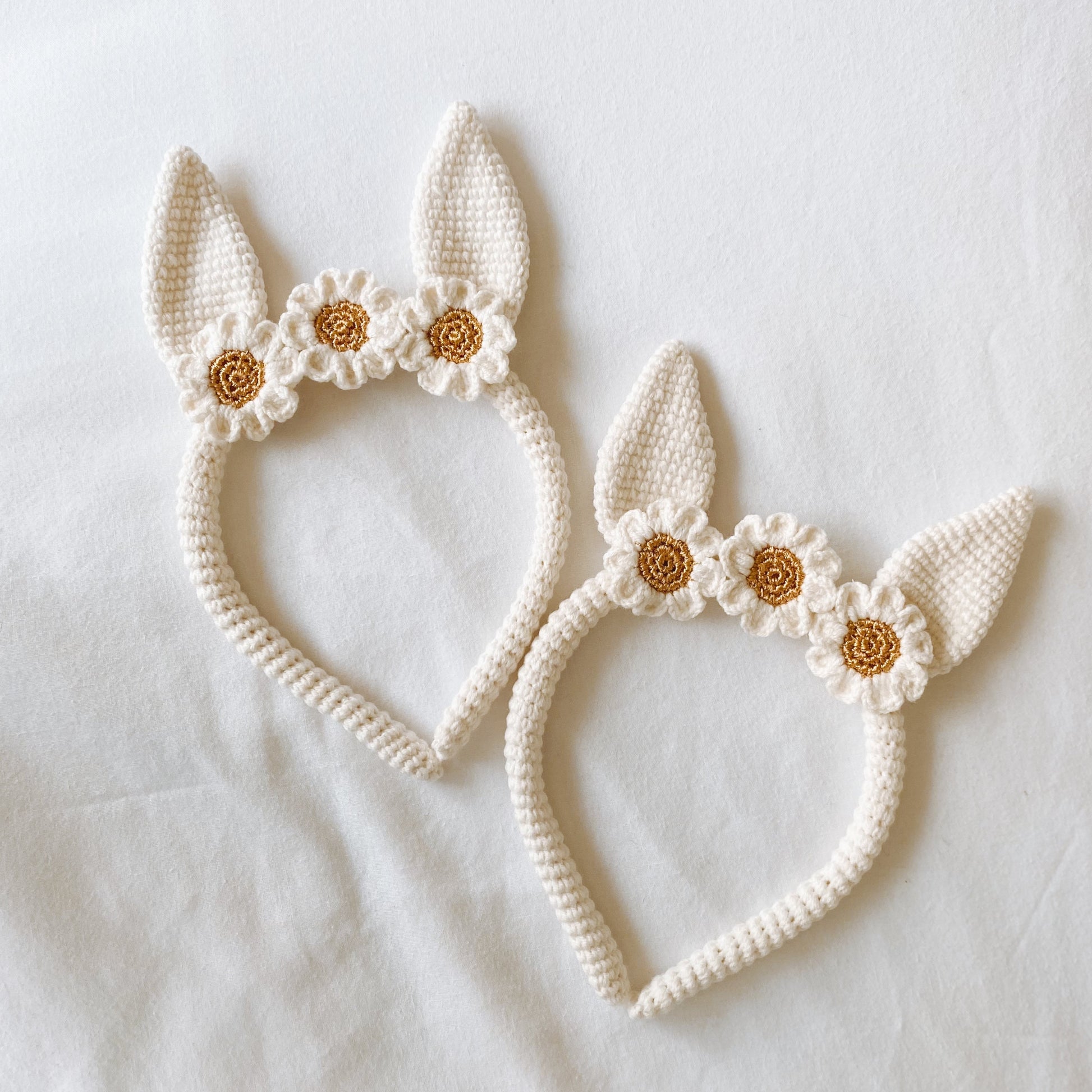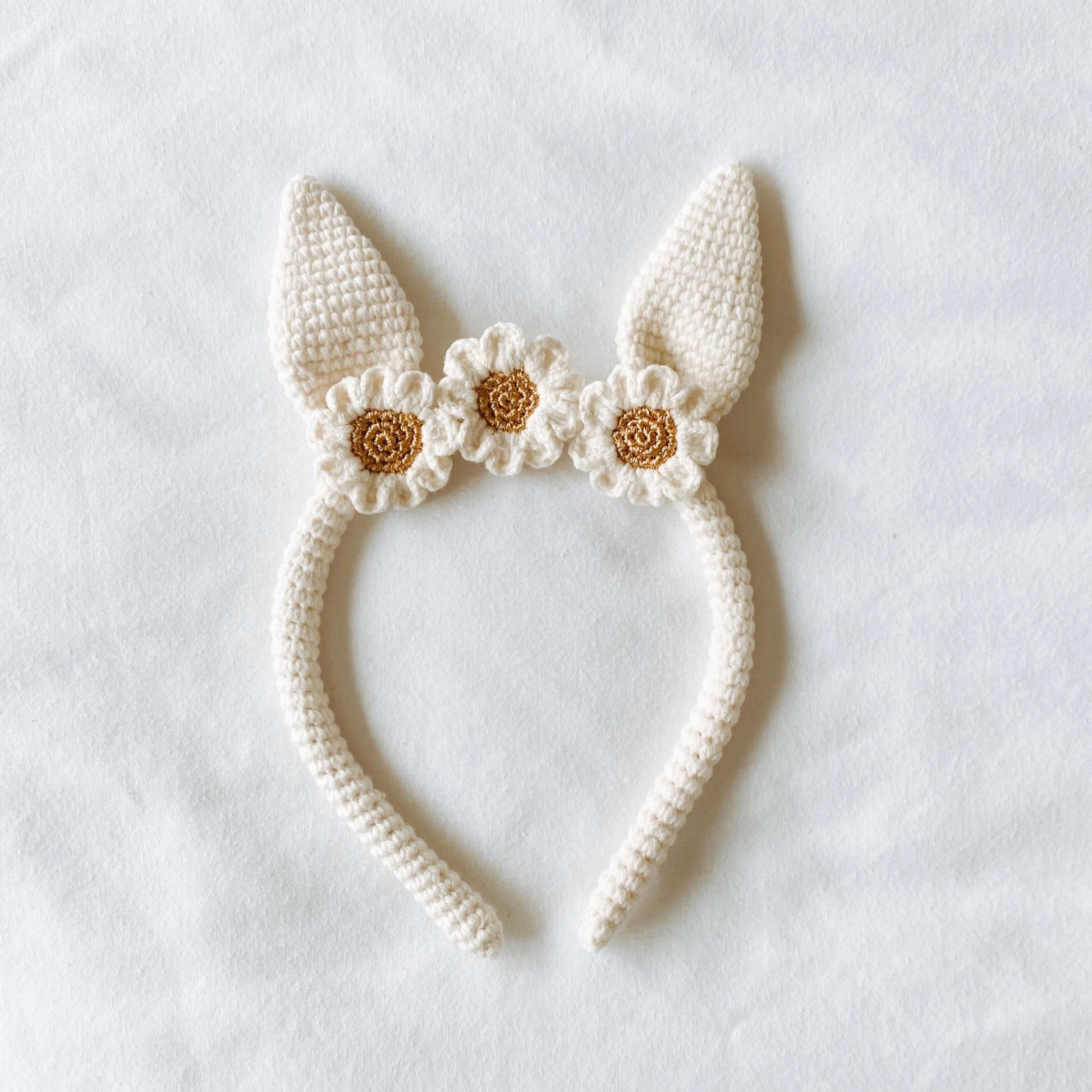 A beautiful handmade crochet headband with the cutest little bunny ears and flowers - The perfect accessory for Easter and Spring.