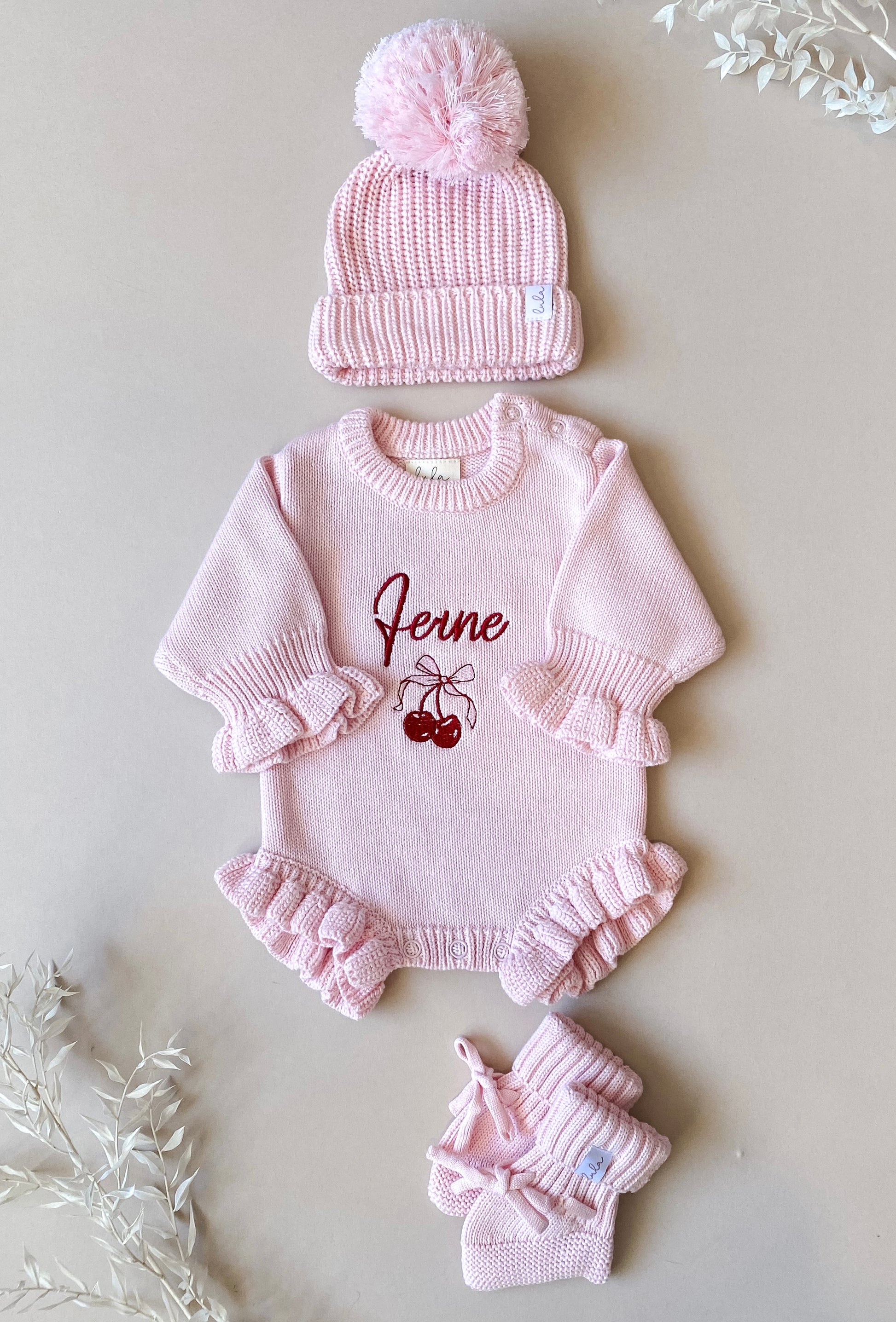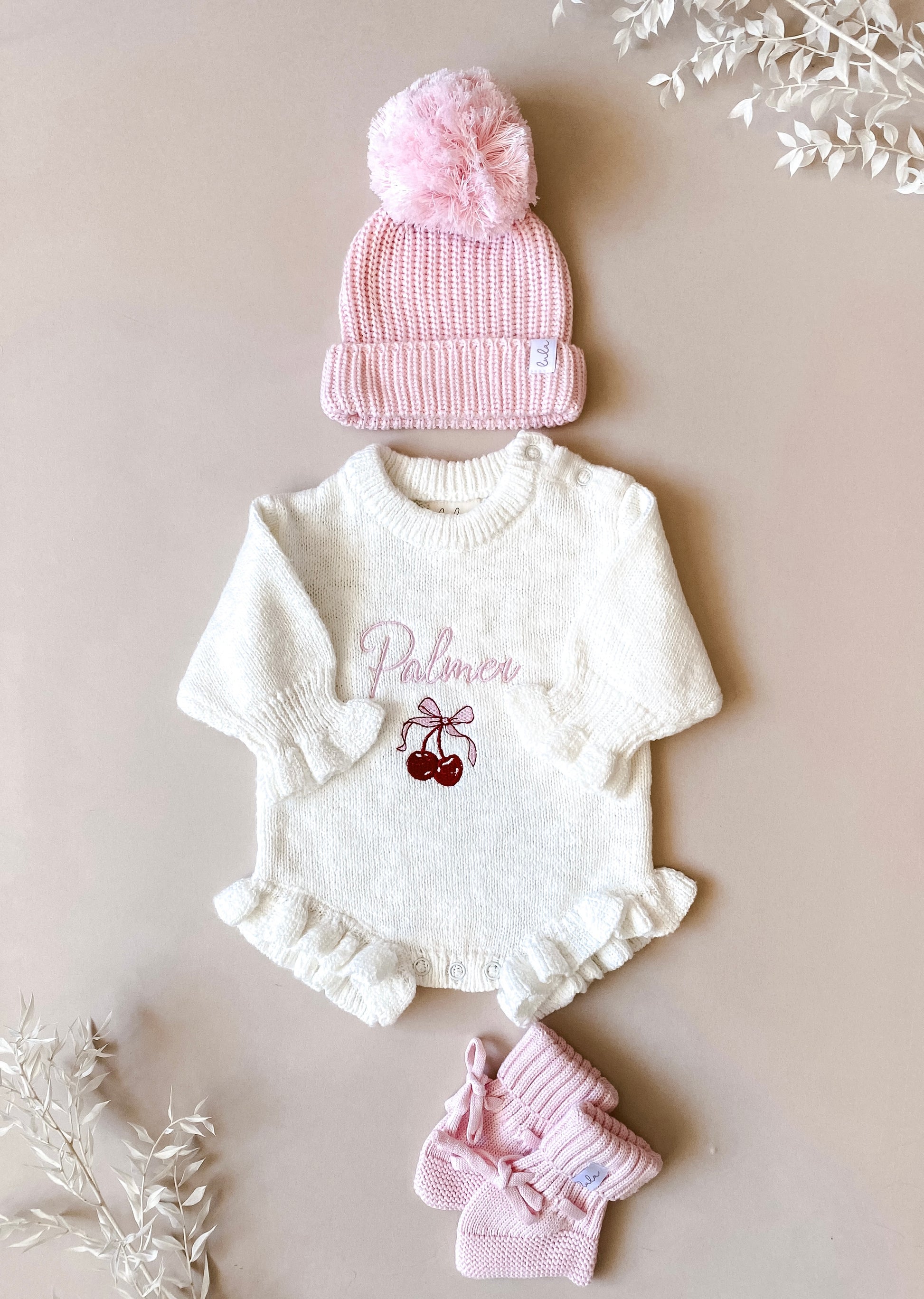 Pairs perfectly with our Frill Knit Cherry Romper and Chunky Knit Booties, both in Blossom Pink. Or mix and match beautifully with our other outfits.