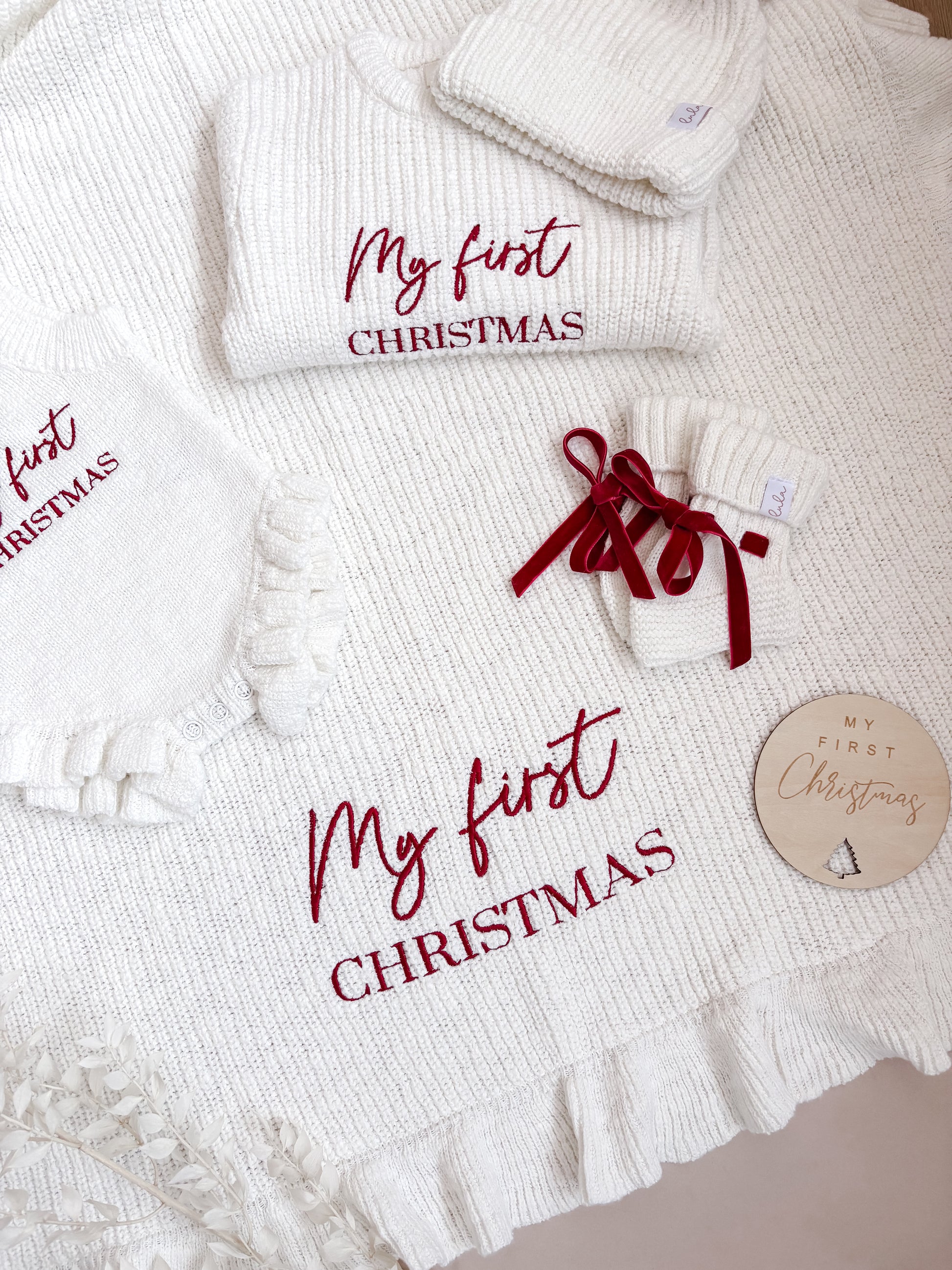 Say hello to our My First Christmas Chunky Knit Blanket 🤍 Crafted from 100% textured cotton in our timeless ivory shade, this luxuriously soft blanket features a frill edge and chunky knit design. Finished with deep red embroidery, it makes a beautiful keepsake for your baby’s first Christmas.
