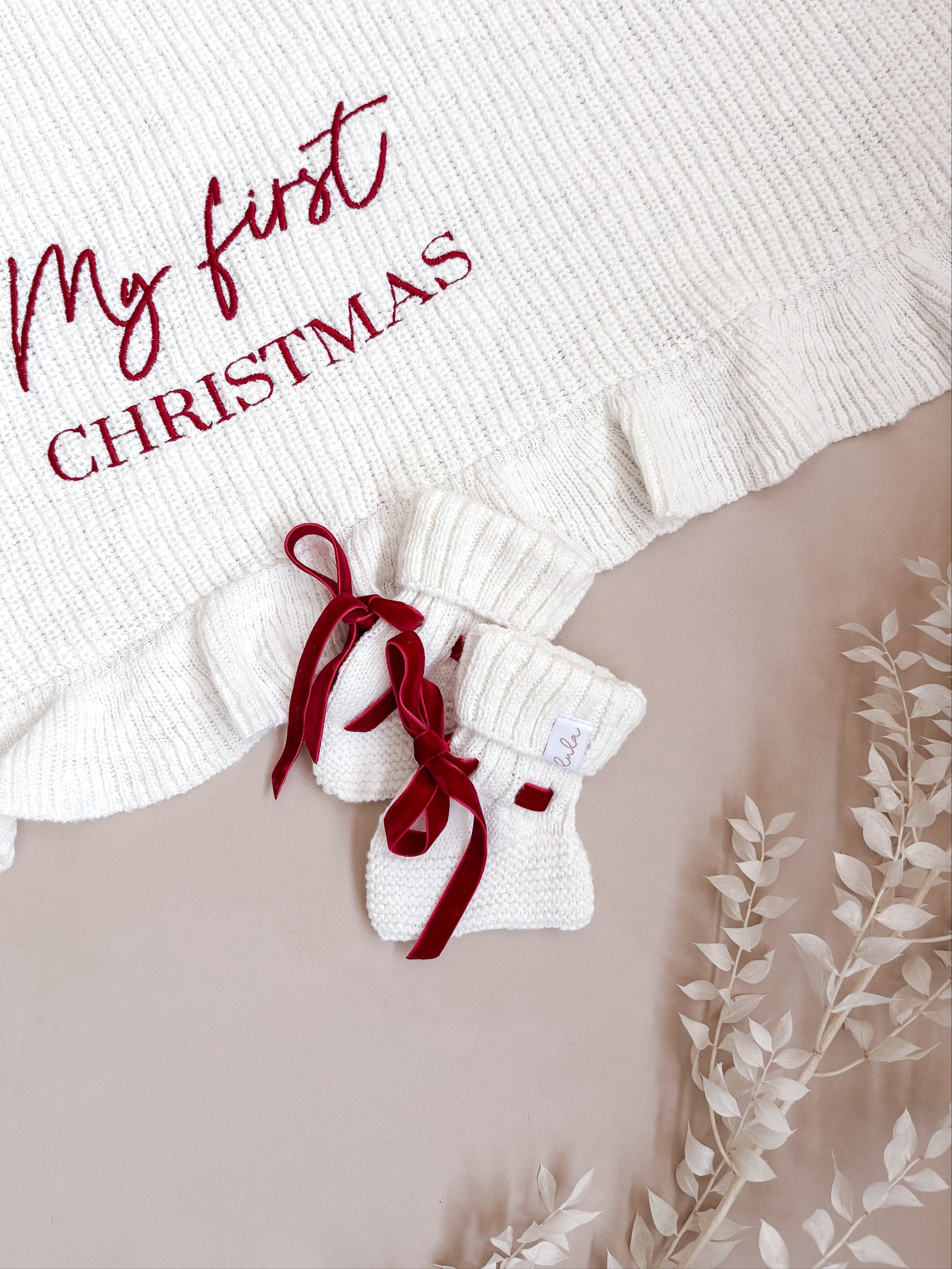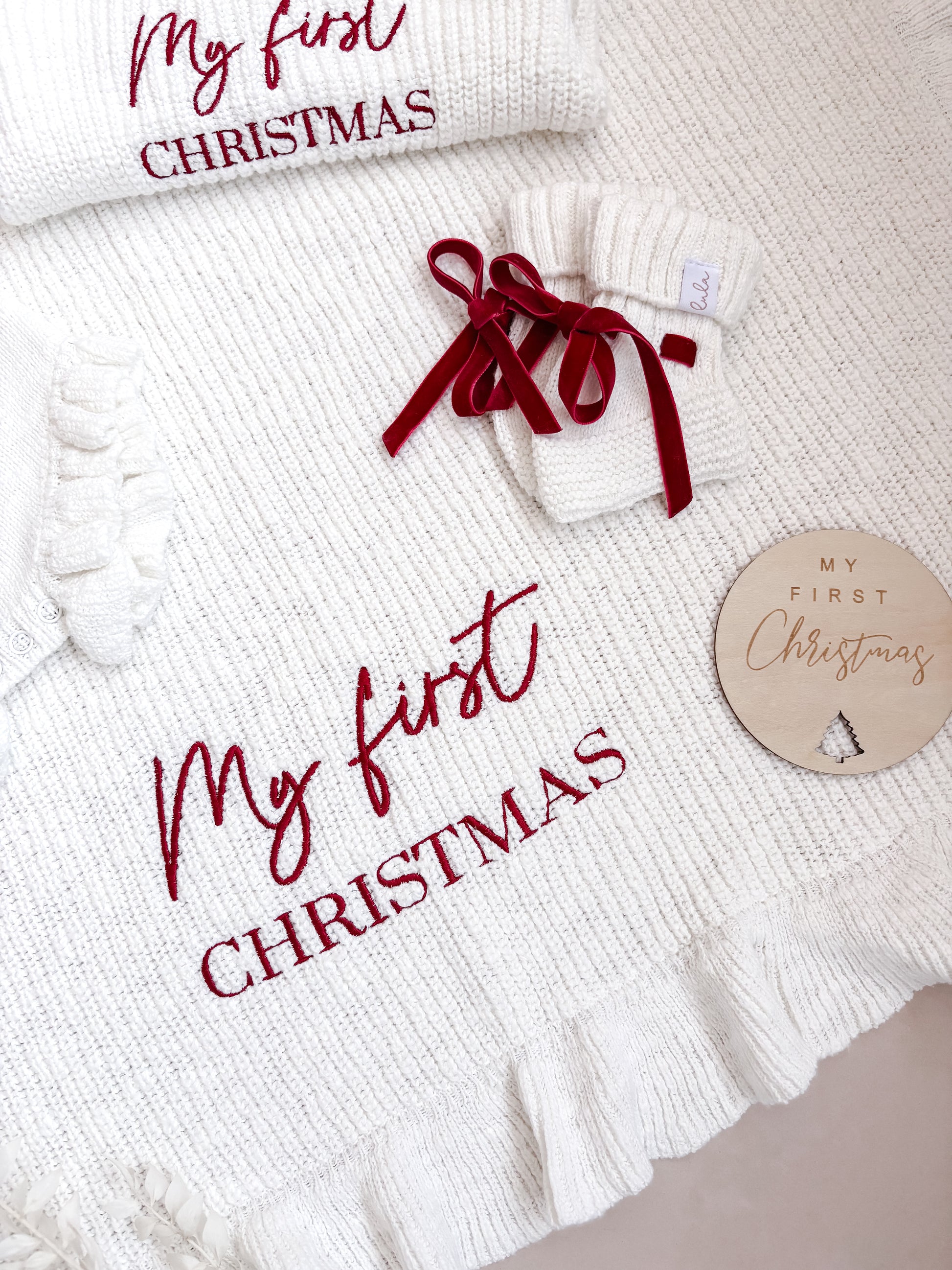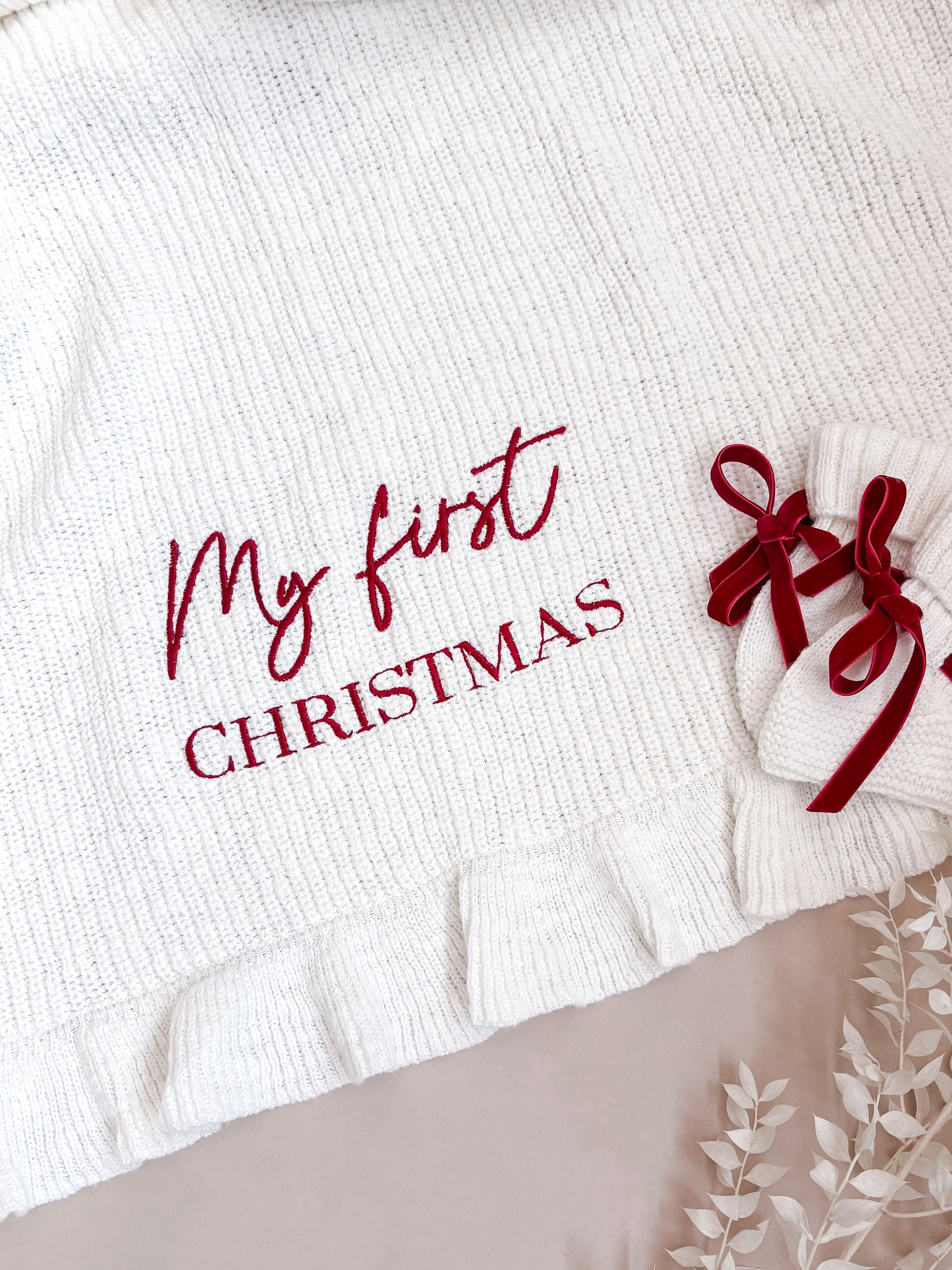 My First Christmas Frill Baby Blanket | Chunky Knit | Ivory