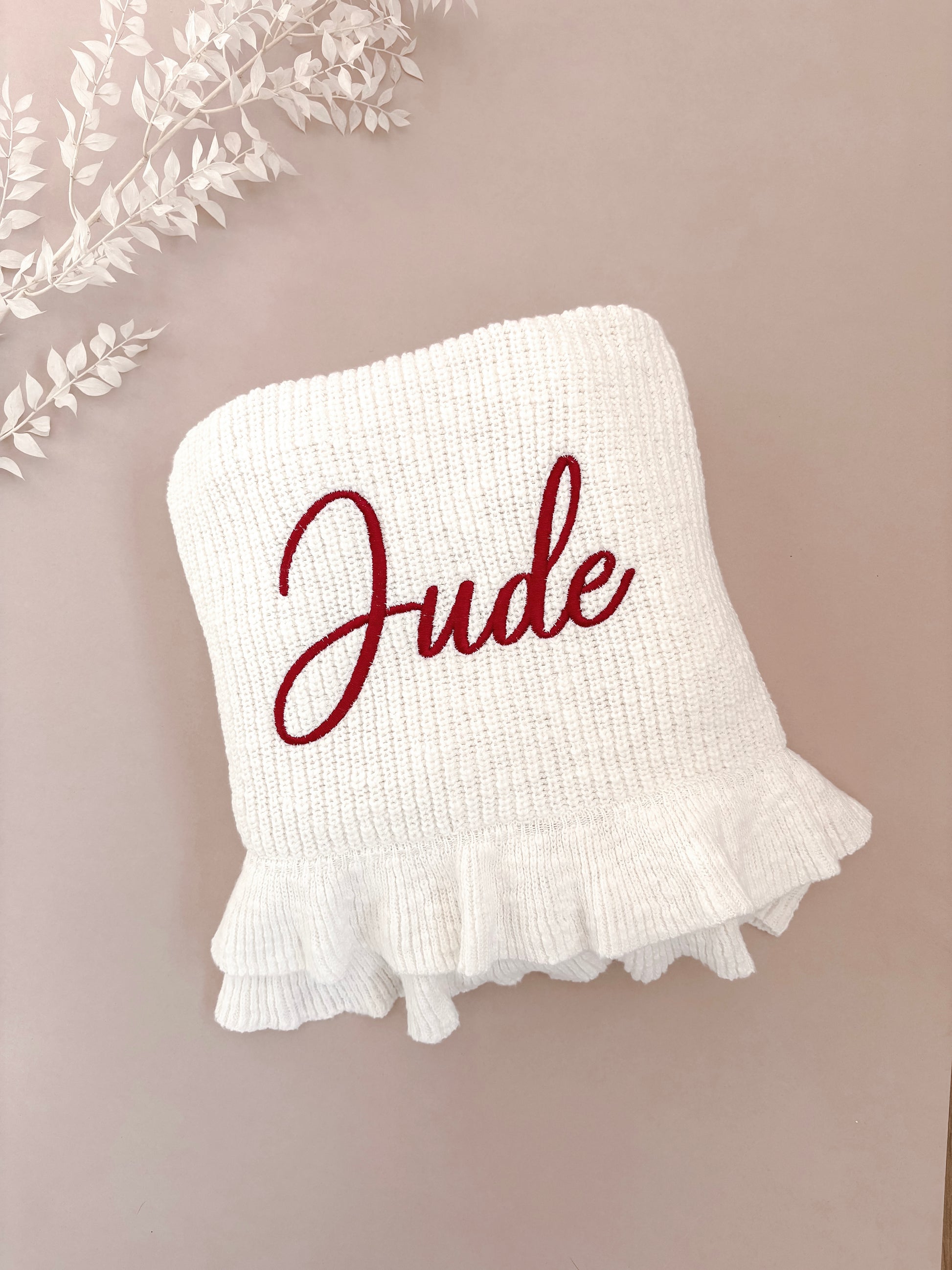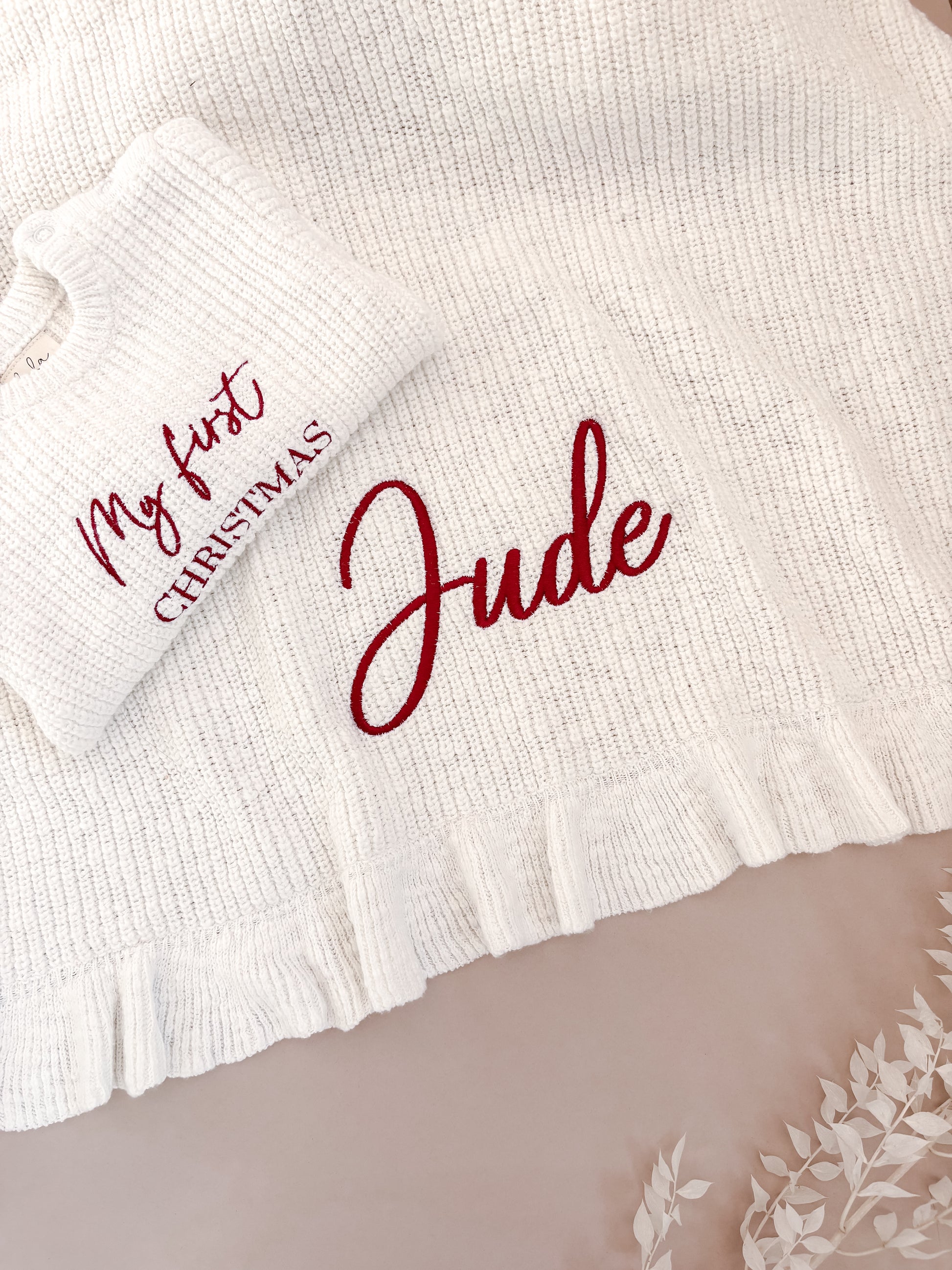 Personalised Christmas Frill Baby Blanket | Chunky Knit | Ivory