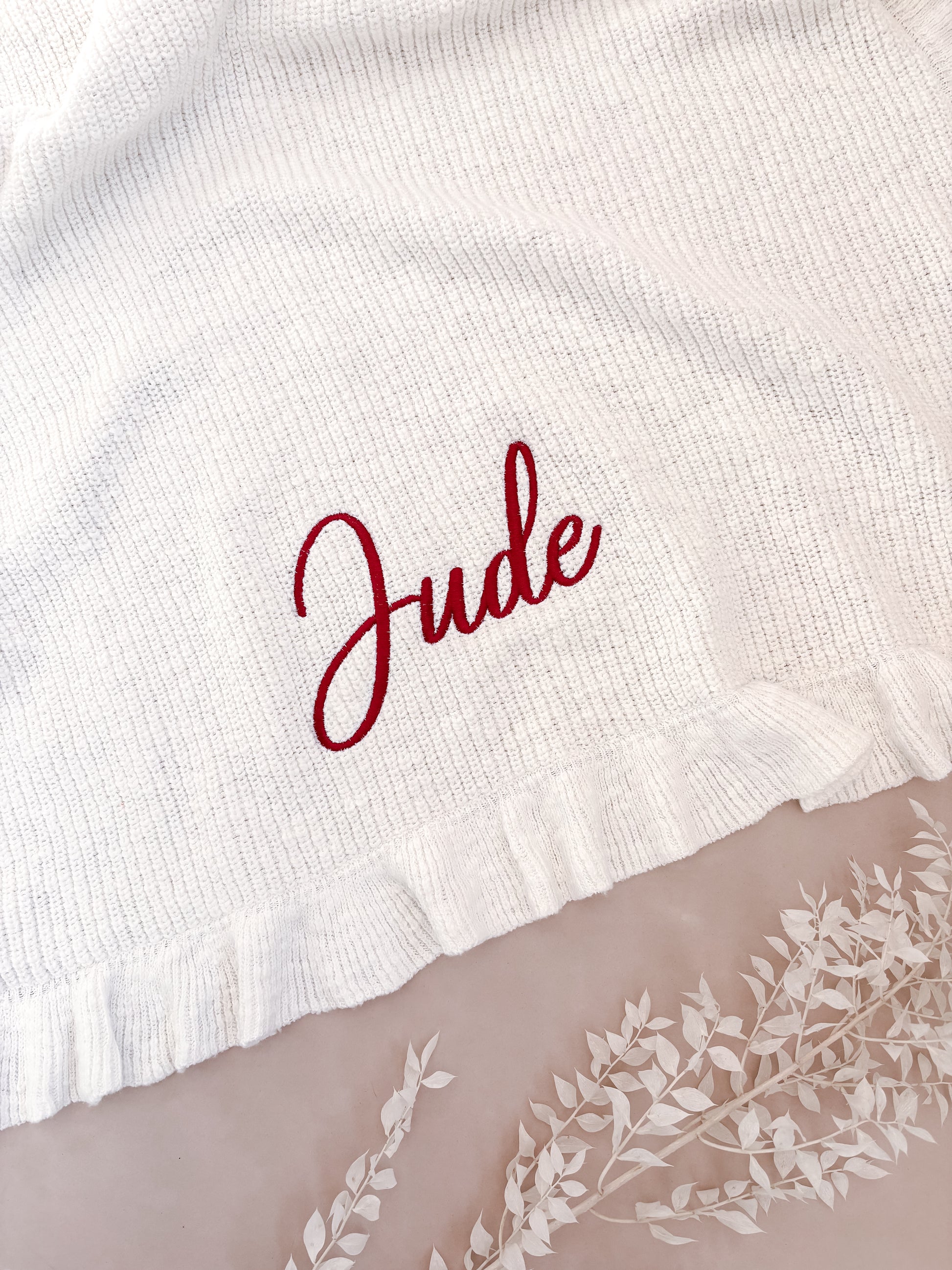 • Embroidery will appear in red thread, either at the top or bottom centre of the blanket